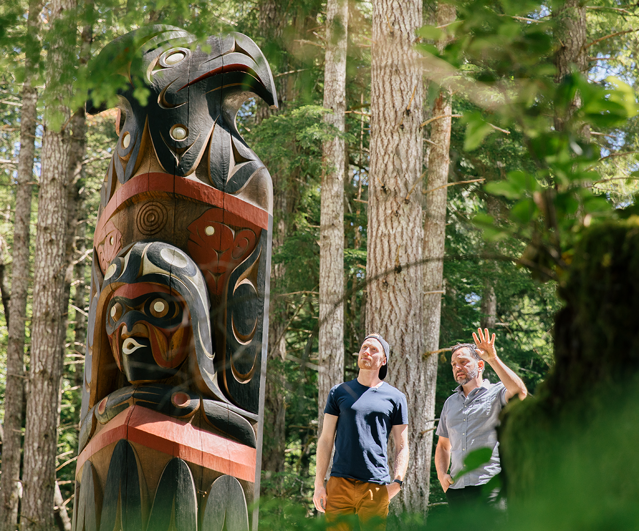 Visit the Yos totem pole: experience the beauty of the Yos totem pole located on the Malahat Connector trail. This incredible work completed by Moy Sutherland Jr. from Tla-o-qui-aht First Nation (Tofino) and John Marston from Stz’uminus First Nation (Chemainus) alongside various Malahat Nation youth, is nestled in the forested lands on the west side of Malahat Mountain at the south end of Shawnigan Lake.